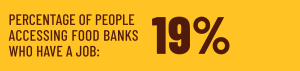 19% of food bank clients report employment as their main source of income, compared to 12% in 2019.