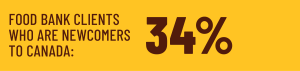 34% percent of food bank clients are newcomers to Canada who have been in the country for 10 years or less.