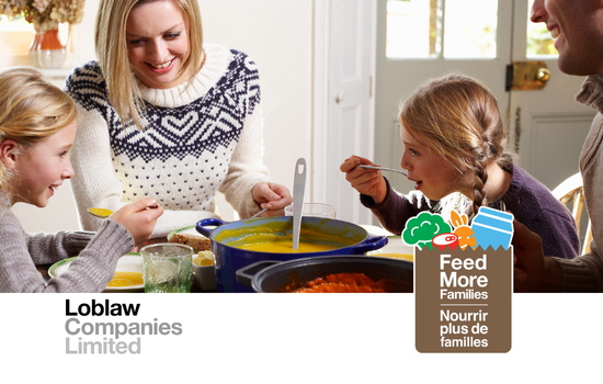 The Feed More Families™ Holiday Food Drive takes place November 28 to December 24, in Loblaw banner stores across Canada. 100% of food and funds donated in stores are directed to their locally matched food bank.